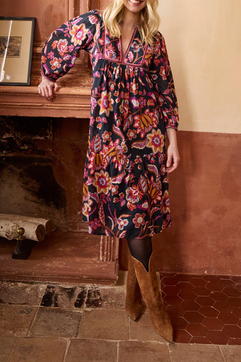 Robe midi à manches longues.