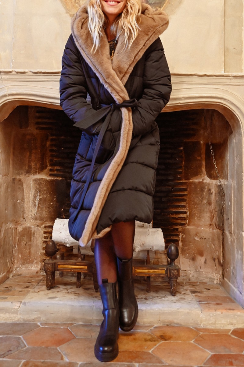 Empiècements en fourrure synthétique sur la capuche et devant.