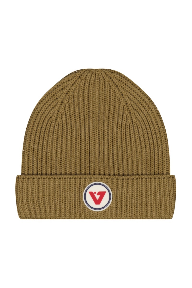Bonnet en maille côtelée.