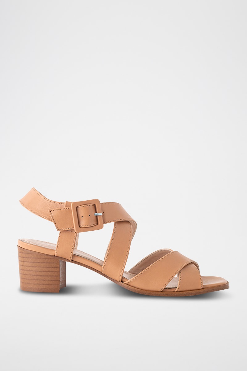 Sandales à talons en cuir de chèvre - Camel
