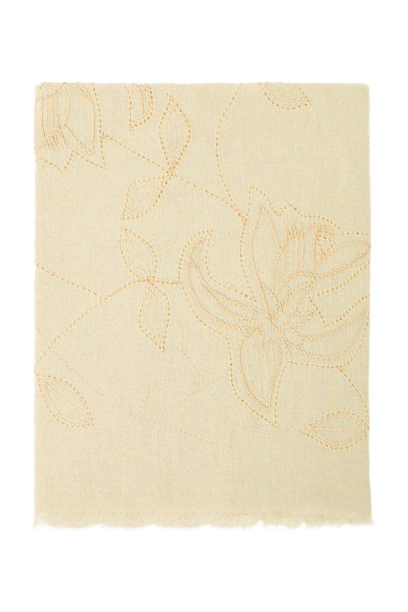 Motifs fleurs brodés.