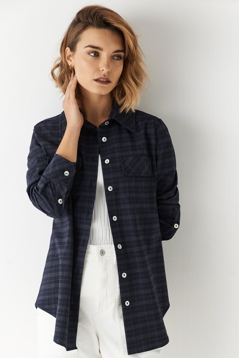 Chemisier à manches longues boutonnées.
