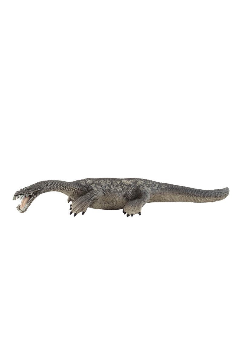 Dans la caisse à jouets, notre Nothosaurus est connu sous le nom de phoque de la préhistoire. Grâce à ses larges pattes, il plonge dans l’eau et glisse sur les dunés. Avec son cou, il trouve des poissons dans les coraux et la paire qu’il te faut dans la caisse à chaussettes. Mais il ne mange que les poissons, pas les chaussettes, sauf s’il est impossible de trouver la paire.
