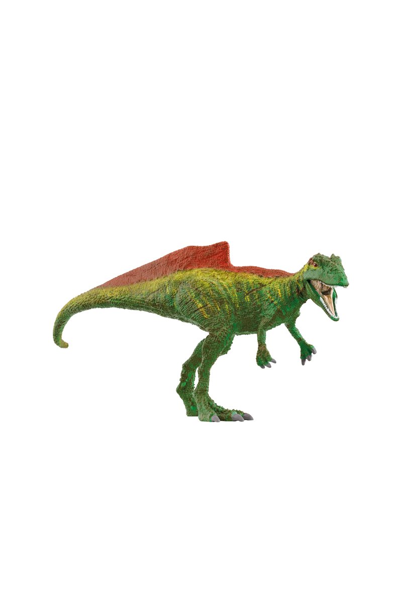 Le Concavenator est si coloré qu’il pourrait être venimeux ! Son corps est recouvert d’écailles jaunes et vertes, et une bosse pointue écarlate dépasse du bas de son dos. Pourquoi un tel étalage de couleurs ? Sans doute pour lui donner une apparence plus menaçante. Sa taille est également impressionnante : le Concavenator mesure environ six mètres de long. Les rares dinosaures qui osent se mesurer à lui comprennent vite qu’ils ont affaire à un terrible adversaire : ses énormes mâchoires s’ouvrent et se referment et dévoilent des dents incroyablement acérées. Sauve qui peut !