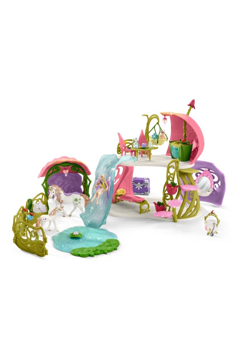 La maison-fleur resplendit au soleil levant dans des couleurs naturelles douces. Tu peux y inviter toutes tes amies elfes. L'écurie est suffisamment grande et approvisionnée en nourriture pour les chevaux. Vous pourrez y raconter des histoires, rêvasser ou partir pour de nouvelles aventures. Les maisons des elfes sont toutes aussi uniques et magnifiques. Mais celle-ci en particulier est un véritable rêve devenu réalité. Elle resplendit au soleil levant dans des couleurs naturelles douces. Un toboggan aquatique part du premier étage pour se jeter dans un petit. Les chevaux, amis fidèles des elfes, broutent devant la maison. Et regardez, même des licornés viennent boire dans l’eau limpide. La personne qui y vit doit être des plus heureuses. Invites-y tes amis elfes et observez ces créatures fantastiques si faciles à effaroucher ou préparez ensemble un délicieux repas elfe. Vous pourrez vous occuper des chevaux dans L'écurie qui ne manque pas d’espace. Vous pourrez vous y raconter des histoires, simplement rêvasser ou partir pour de nouvelles aventures. La nuit, on peut contempler le magnifique ciel étoilé de l’univers bayala depuis le premier étage.