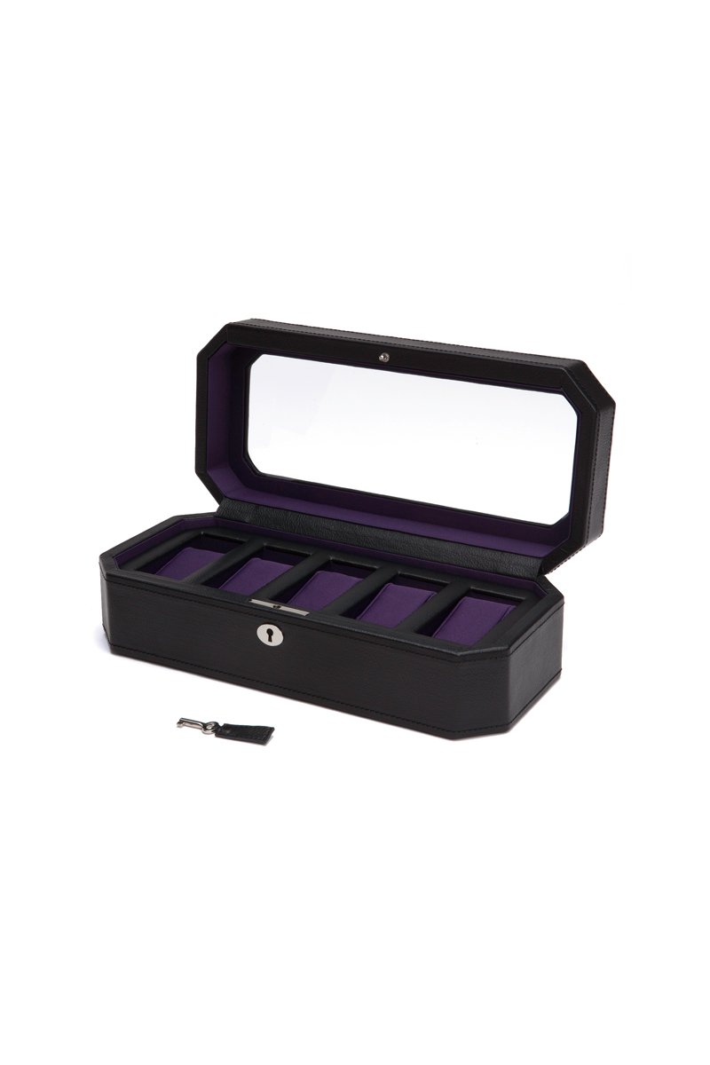 Ecrin pour 5 montres en cuir Windsor - Noir et violet