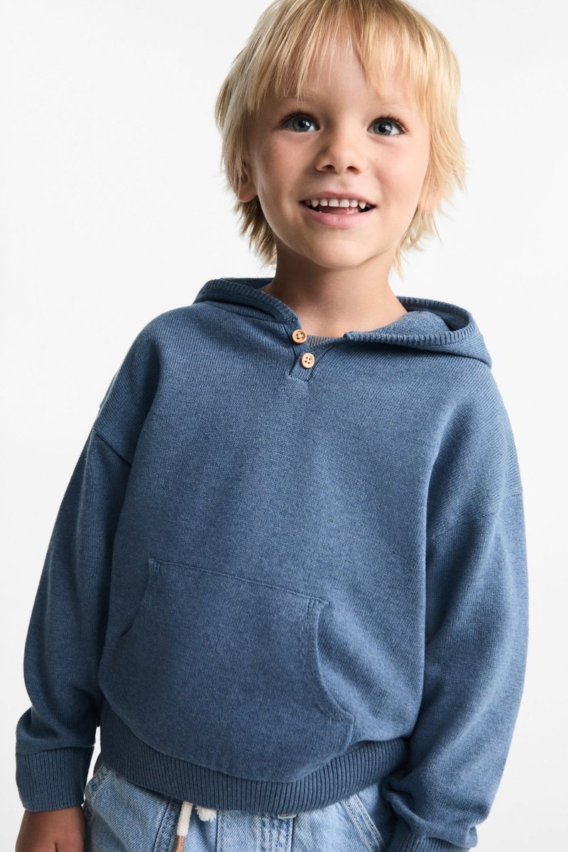 Pull-over maille capuche - Bleu