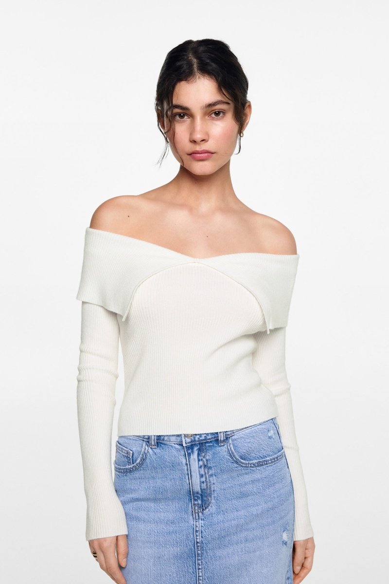 Pull maille épaules dénudées.