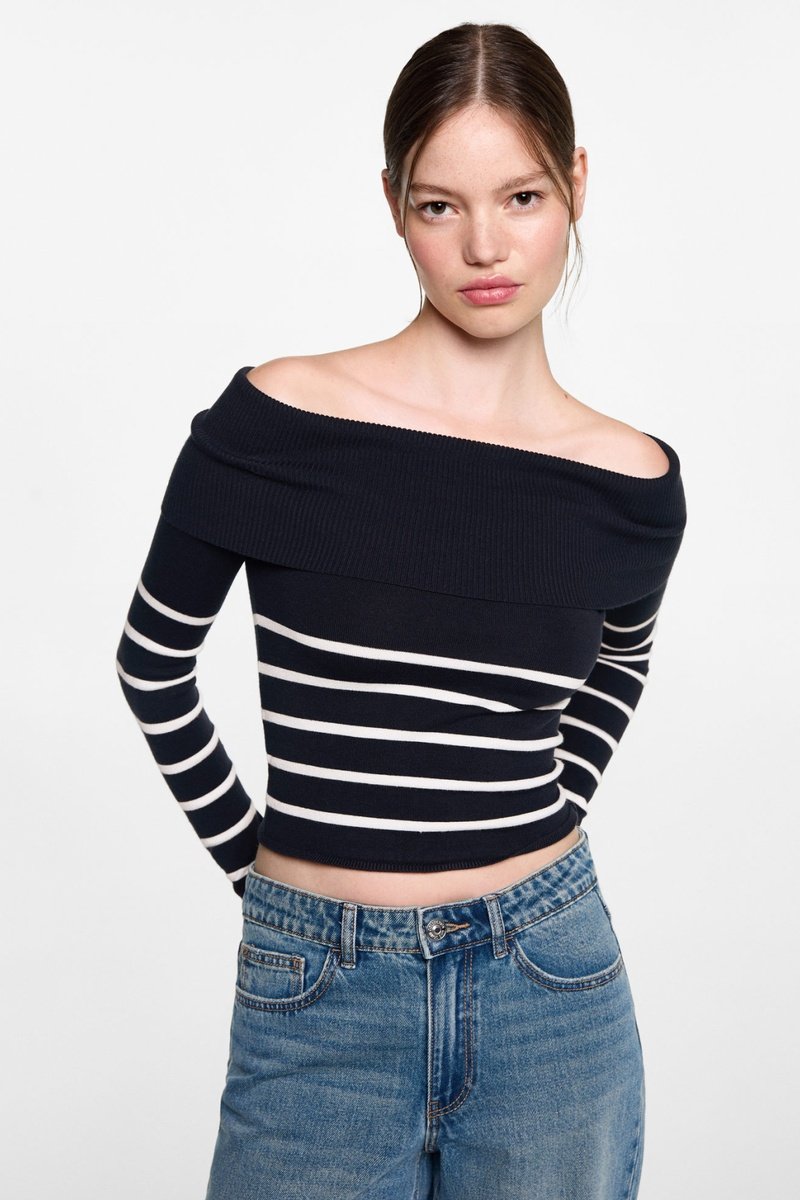 Pull-over rayures épaules dénudées.