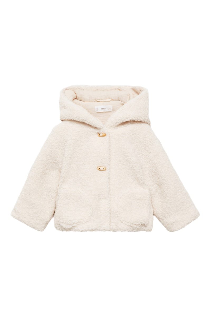 Manteau imitation mouton retourné capuche - Blanc cassé