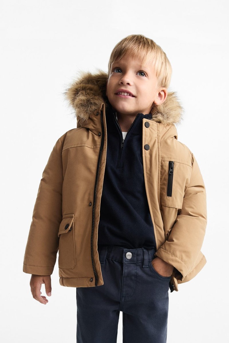 Capuche en imitation fourrure amovible.