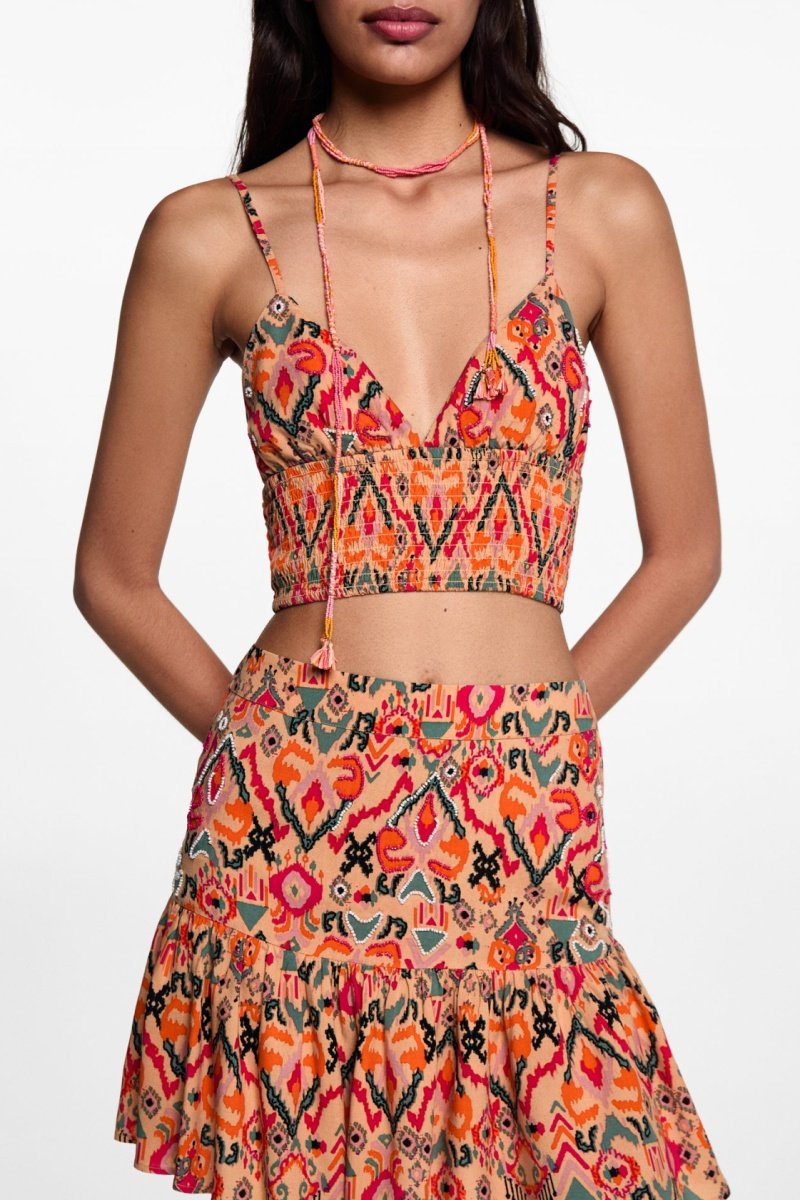 Top imprimé perles - Orange pastel