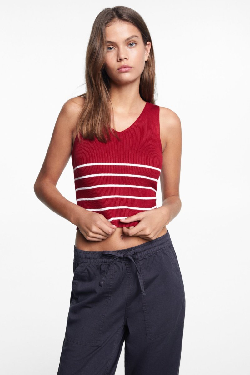 Top bretelles à rayures - Rouge