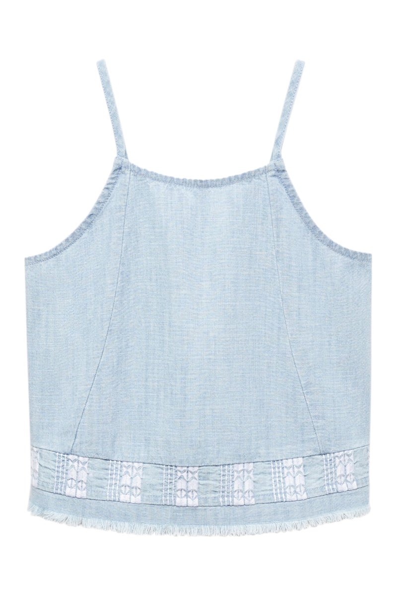 Top brodé franges - Bleu clair