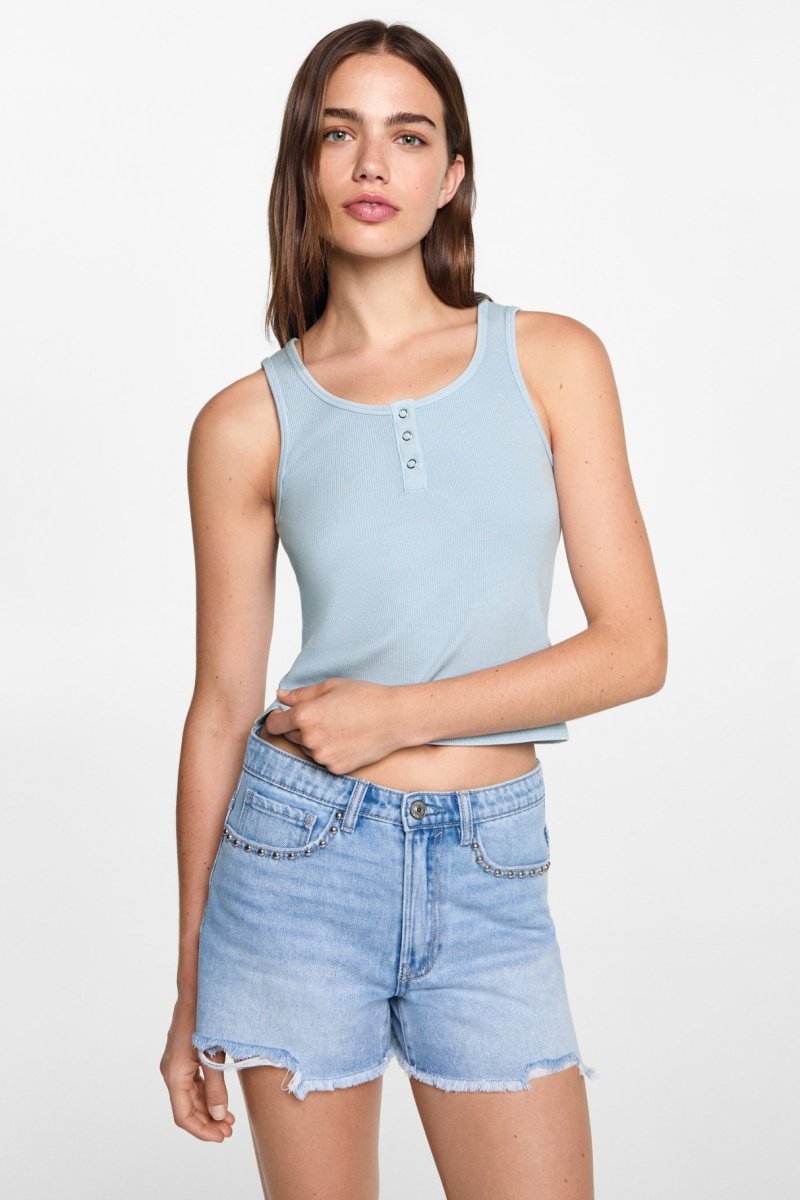 Top côtelé en coton - Bleu ciel
