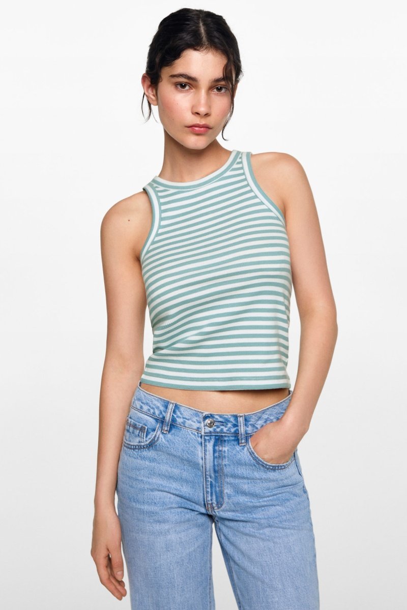 Top côtelé en coton - Vert menthe