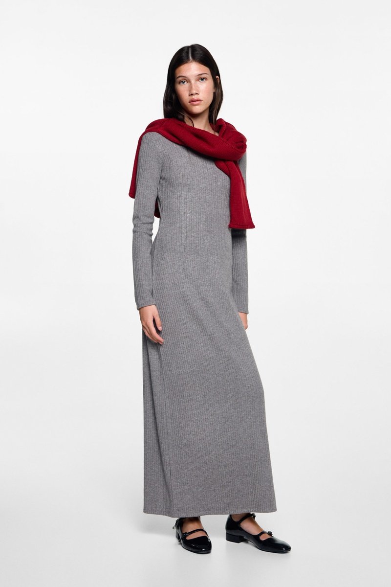 Robe midi à bords côtelés - Gris chiné