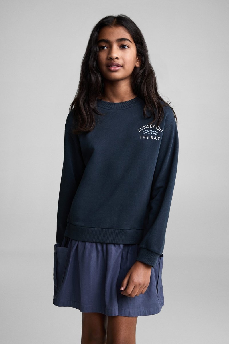 Robe sweat-shirt brodée - Bleu marine