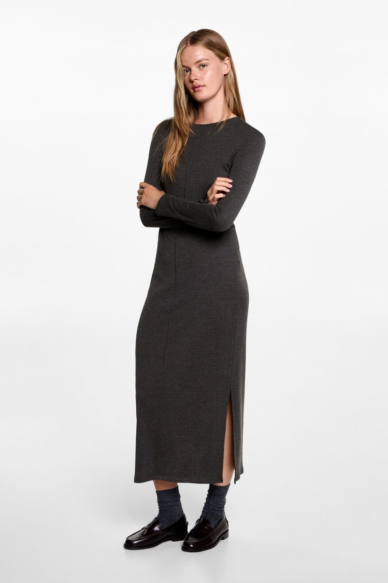 Robe manches longues ouverture - Anthracite