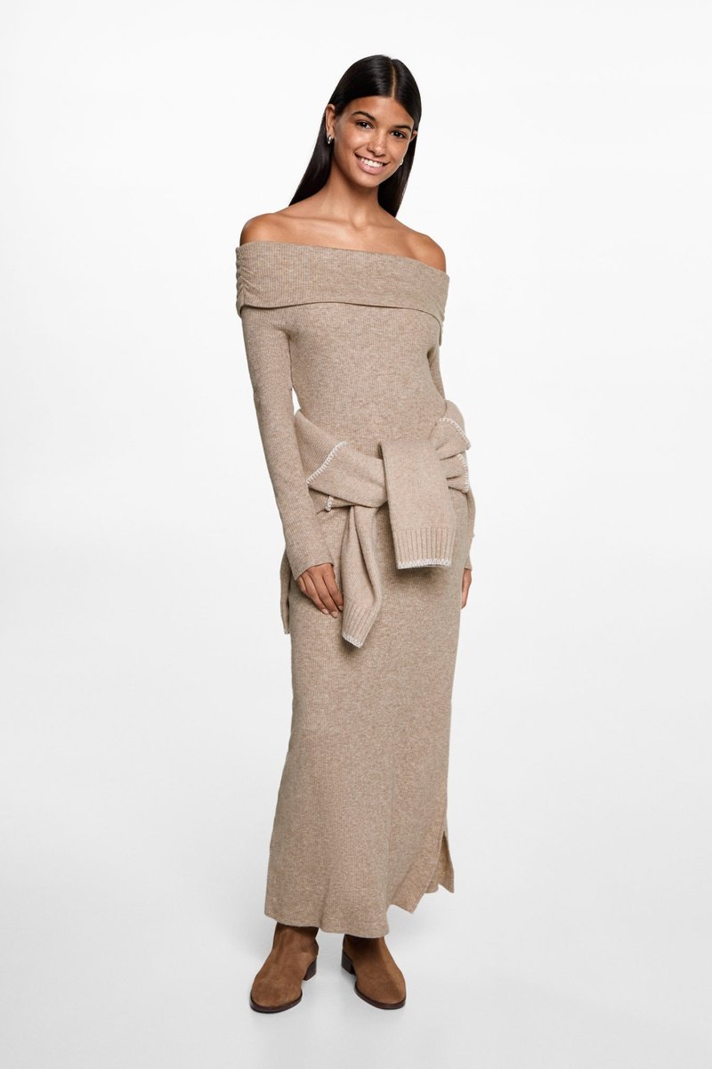 Robe midi épaules dénudées.