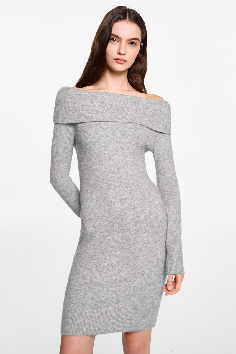 Robe épaules dénudées - Gris clair chiné