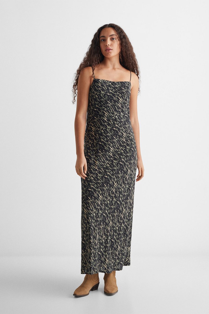 Robe midi imprimée - Noir