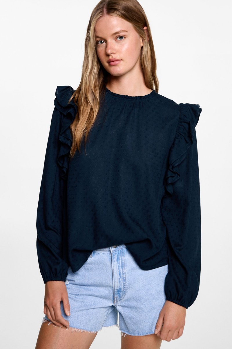 Chemisier à volants brodé - Bleu marine