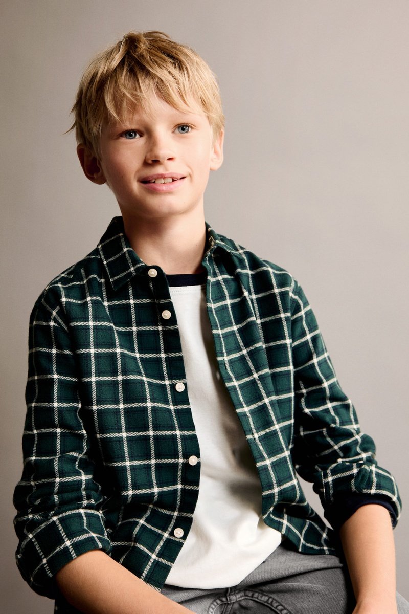 Chemise à carreaux en coton - Vert foncé