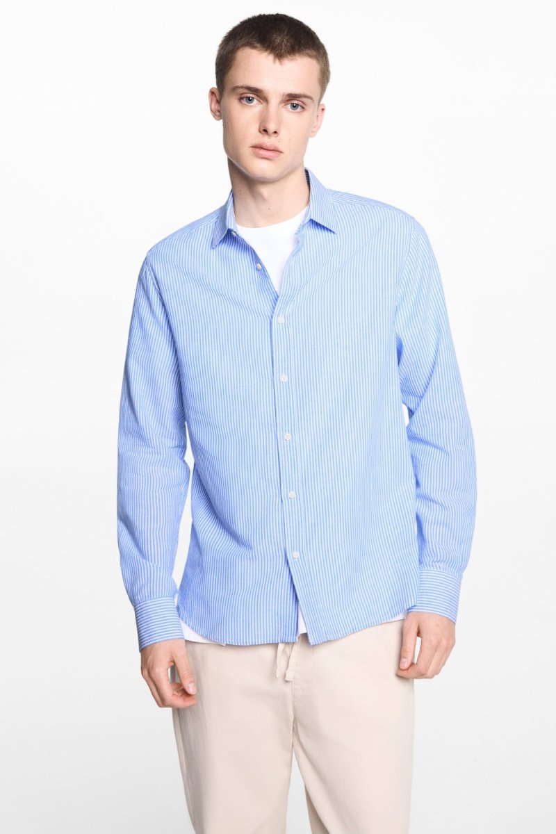 Chemise lin rayée - Bleu
