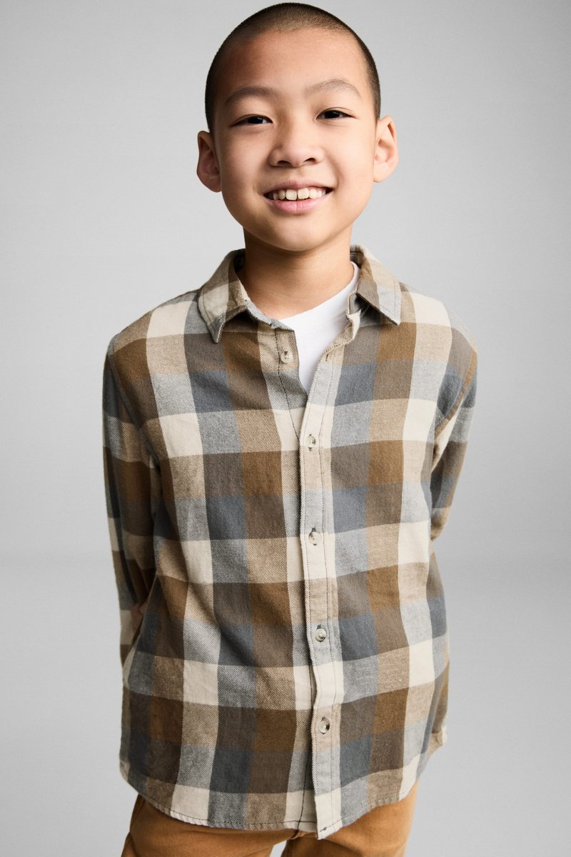 Chemise à carreaux en coton - Marron et bleu