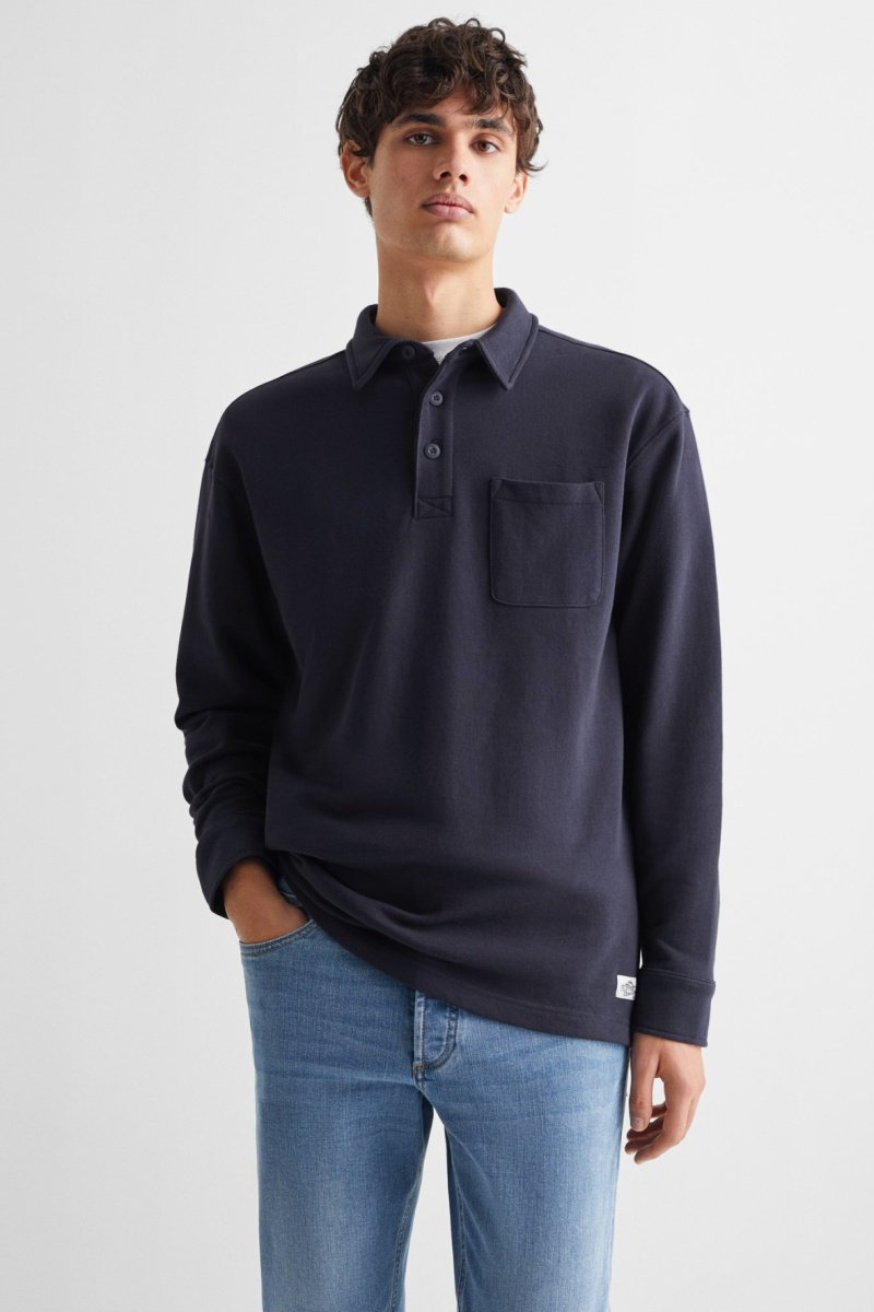 Polo coton à manches longues - Bleu marine