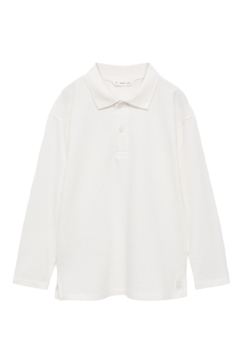 Polo coton à manches longues - Blanc cassé
