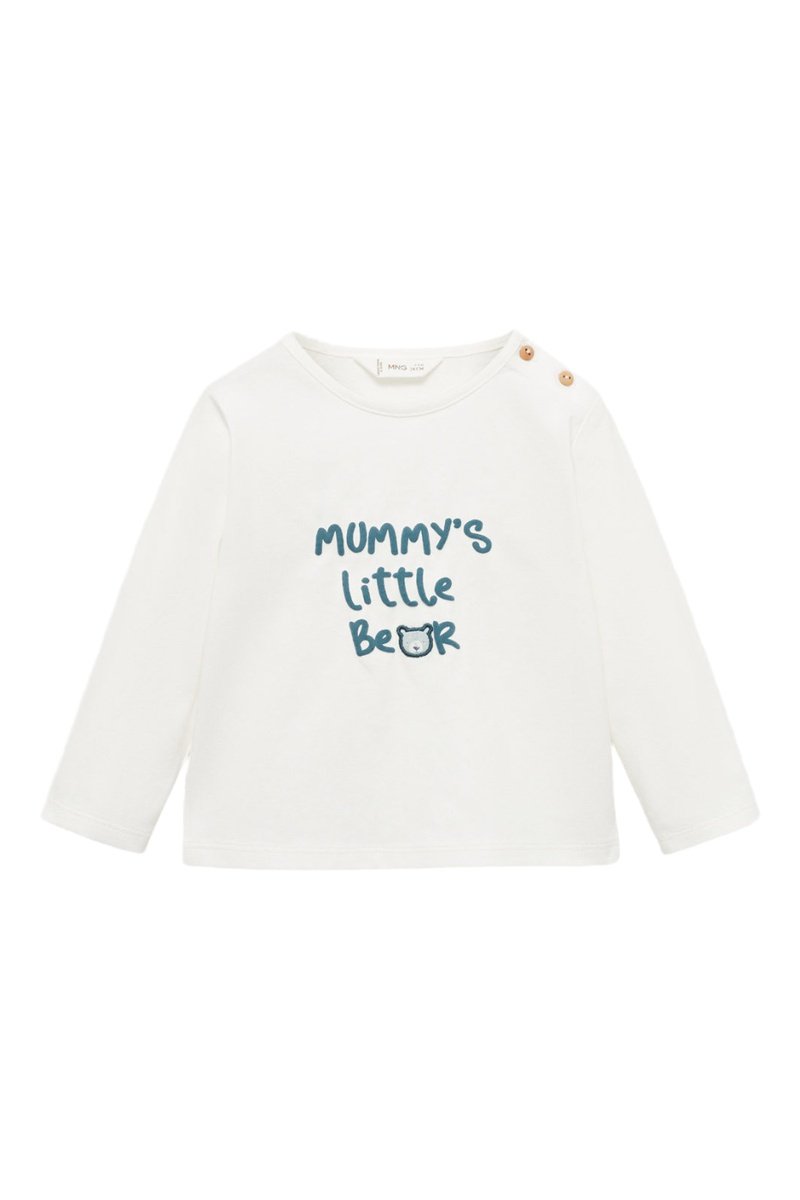 T-shirt coton détail brodé - Blanc cassé