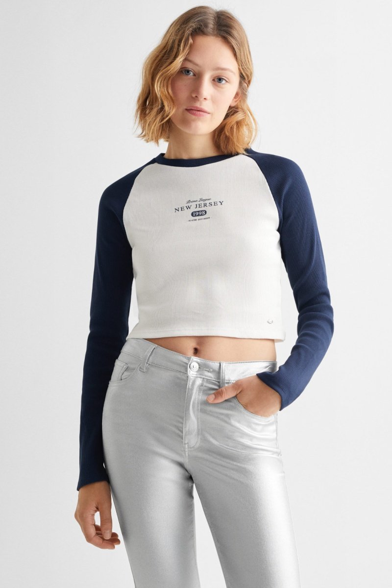 T-shirt côtelé avec un message - Ciel