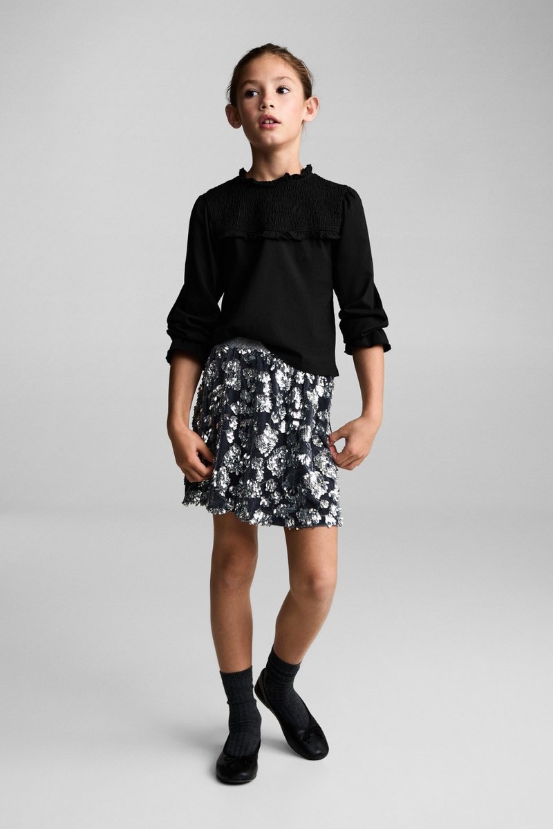Manches longues avec poignets élastiques et fronces.