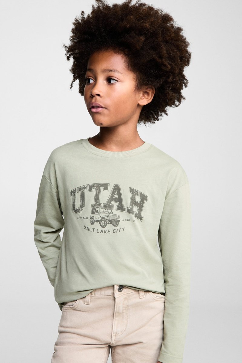 T-shirt manches longues imprimé - Vert