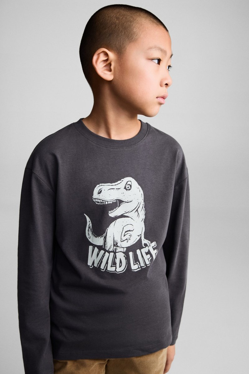 T-shirt manches longues imprimé - Anthracite