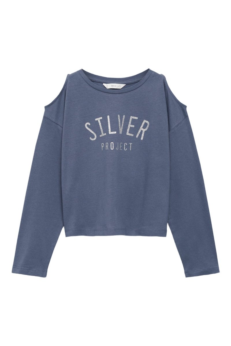 T-shirt coton ouverture épaules - Bleu
