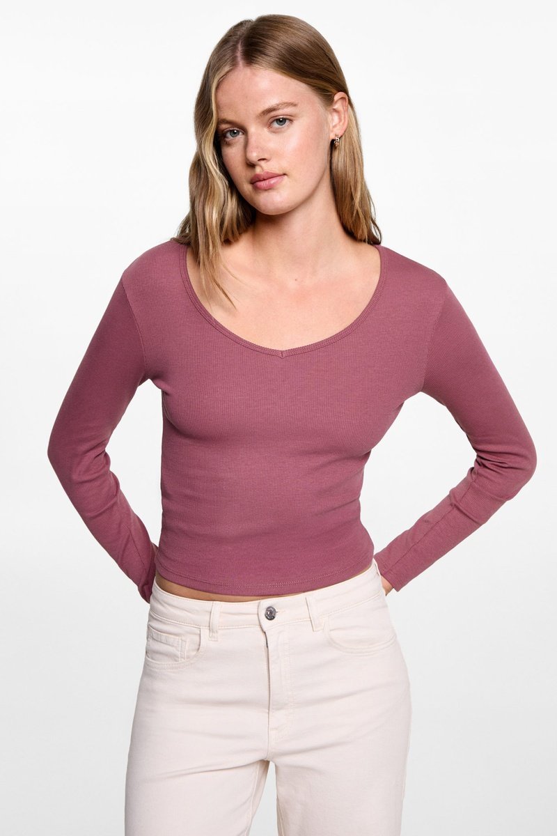 T-shirt manches longues col V.