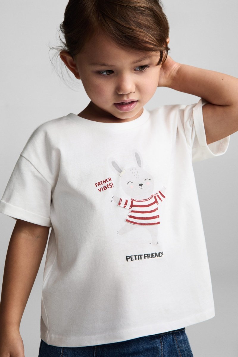 T-shirt coton imprimé - Blanc cassé