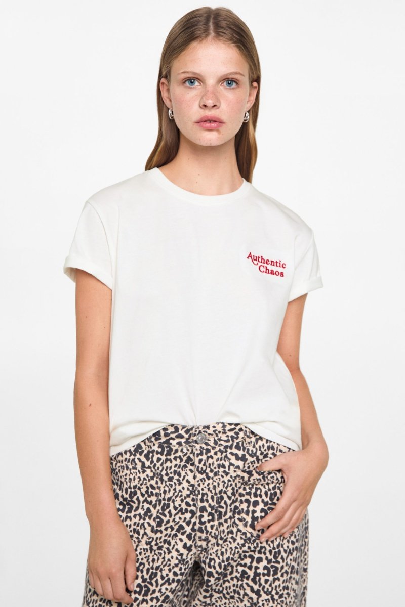 T-shirt coton détail brodé - Blanc cassé