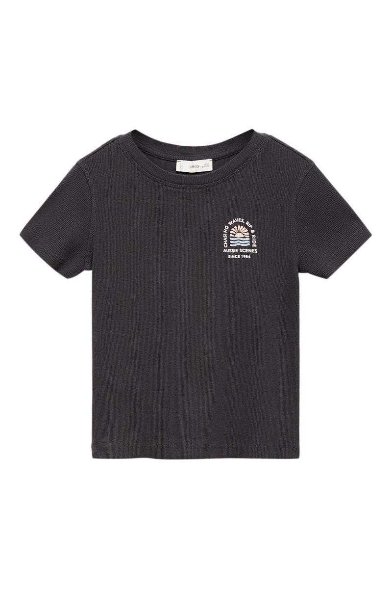 T-shirt imprimé maille côtelée - Anthracite