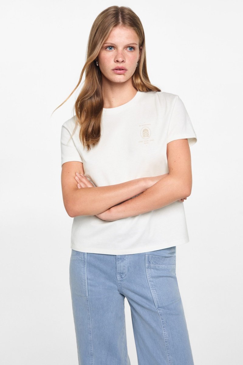 T-shirt coton imprimé - Blanc cassé