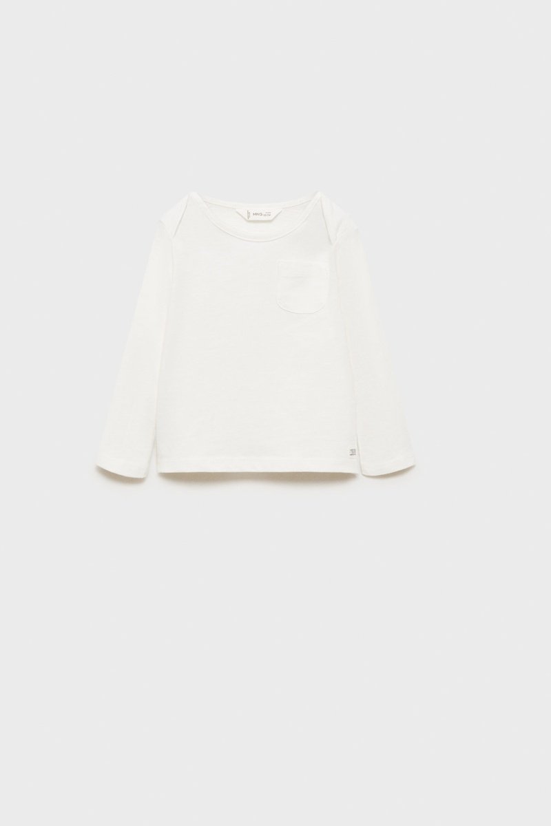 T-shirt manches longues poche - Blanc cassé