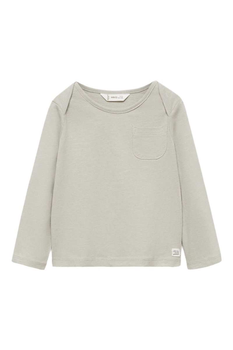 T-shirt manches longues poche - Gris chiné