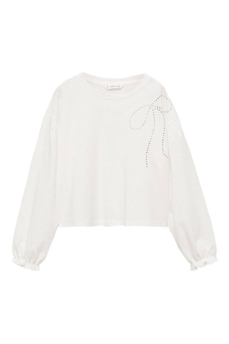 T-shirt manches longues détail strass - Blanc cassé