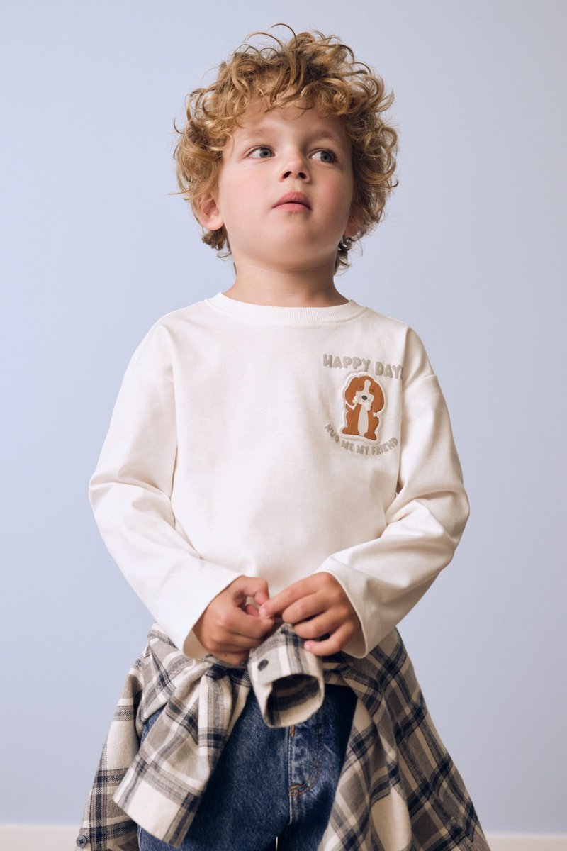 T-shirt manches longues imprimé - Blanc cassé