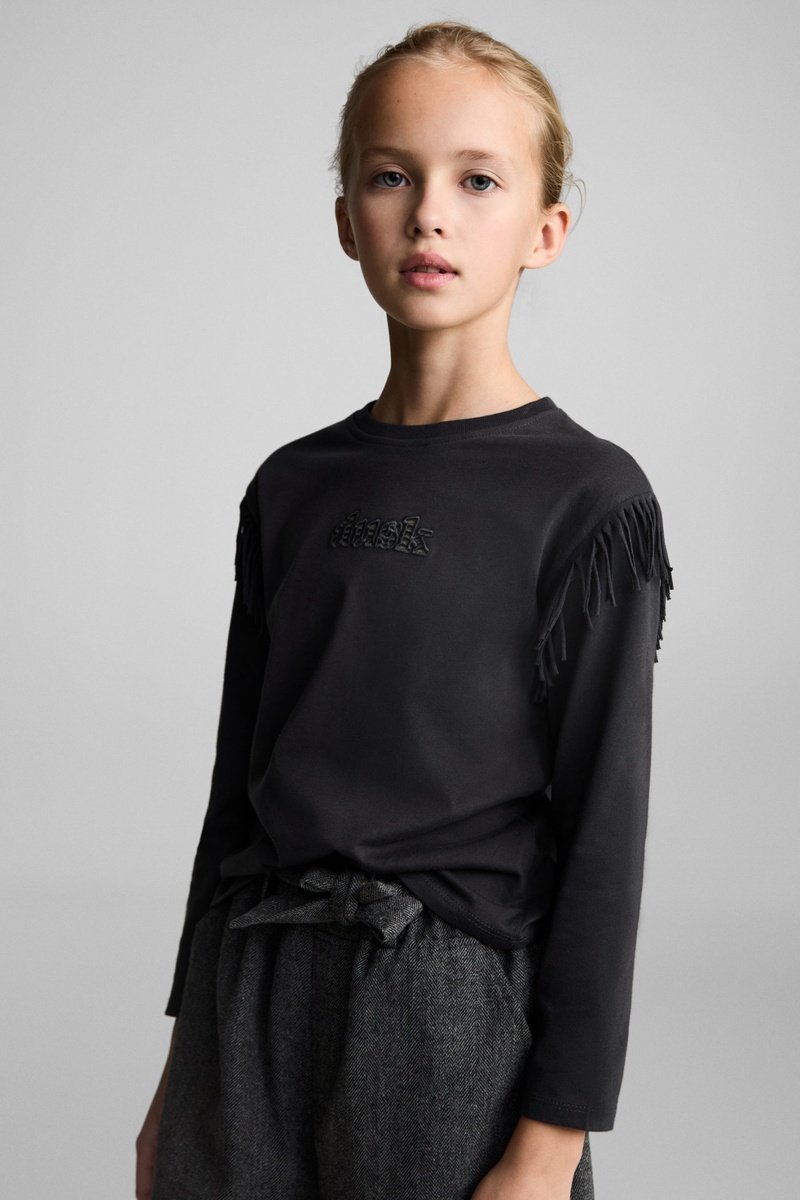 T-shirt brodé franges - Anthracite