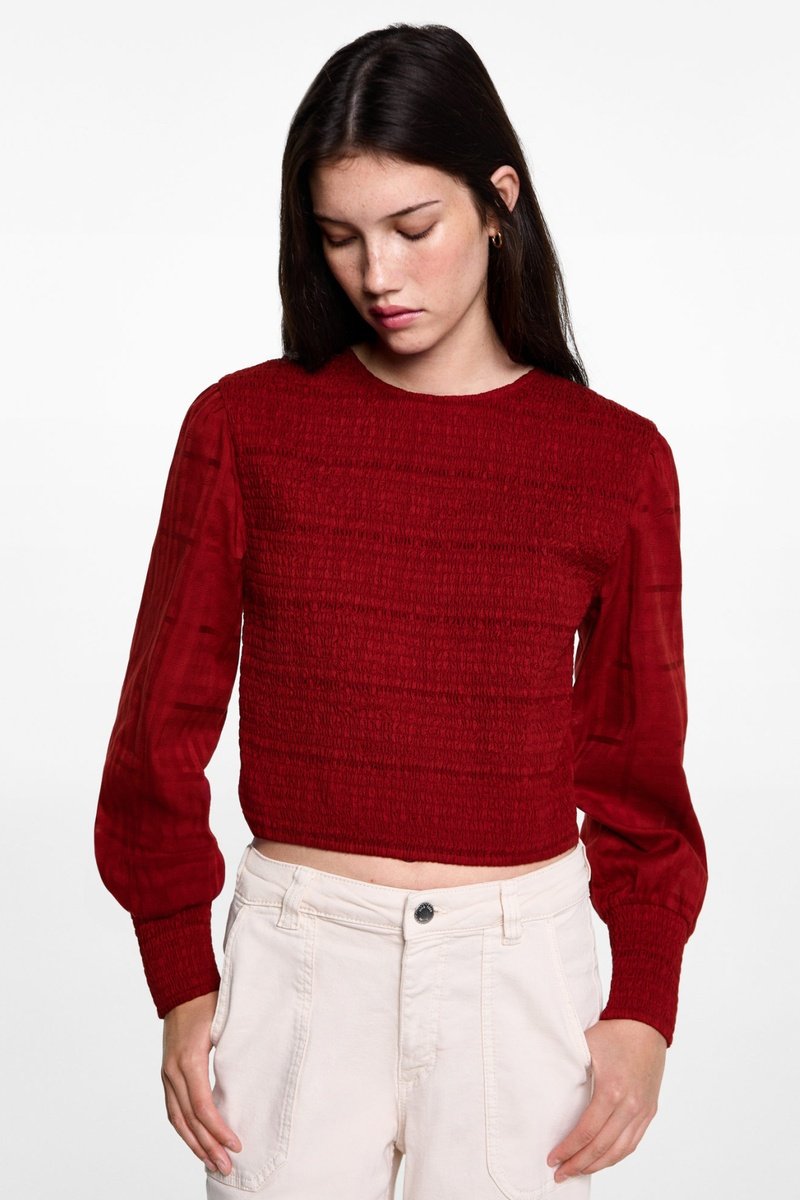 Blouse coton détails froncés - Rouge