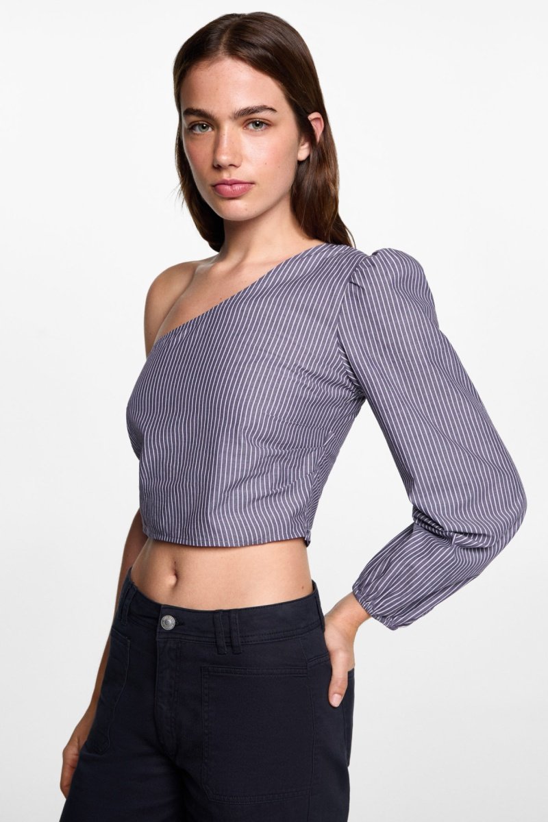 Blouse asymétrique rayures - Bleu clair